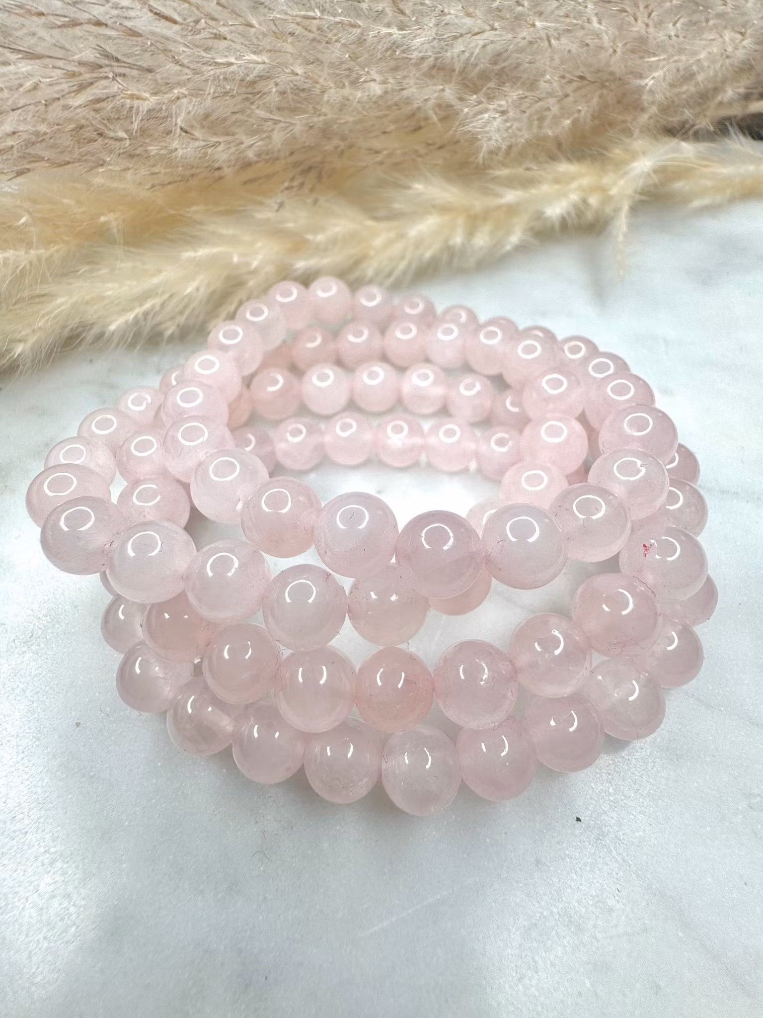 Elastiskt armband med pärlor i rosenkvarts